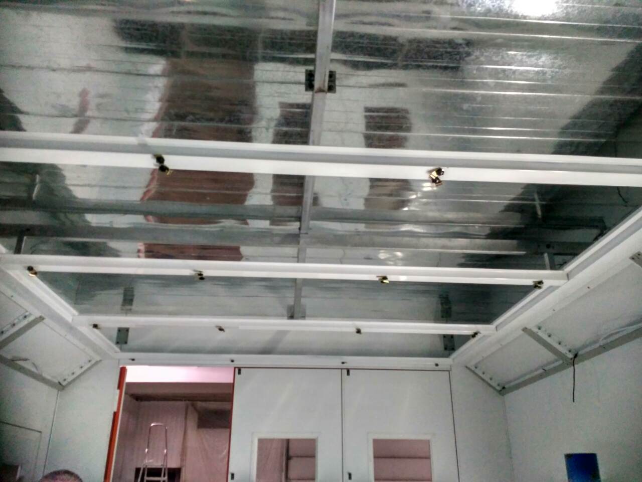 На данной модели покрасочной камеры используется дополнительное боковое освещение, оно включает в себя 8 плафонов, в каждом по 2 лампы мощностью по 18 Вт каждая. Блок управления и его компоненты импортного производства, они защищены от перегрузки, перегрева и пропадания фазы, мотор с линейным приводом. При истечении заданных значений времени, работа камеры автоматически прекращается. Покраска происходит при постоянной температуре. Питание камеры осуществляется посредством трёхфазной сети с напряжением 380 В, мощность установки 14 кВт.