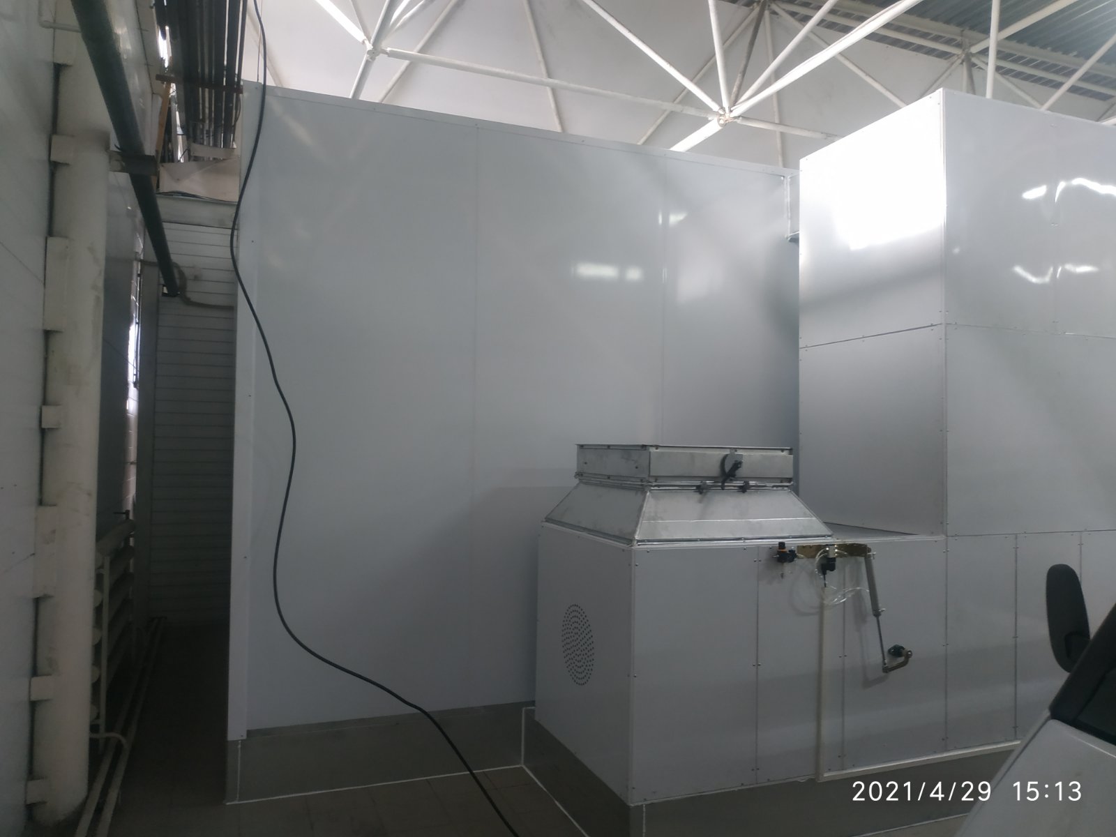 Данная окрасочно-сушильная камера оборудована двумя вентиляторами: приточным и вытяжным. Наличие двух вентиляторов позволяет обеспечивать воздухообмен внутри камеры до 24 000 м³/ч, скорость потока воздуха внутри камеры составляет 0.25 м/с. Приточный вентилятор обладает мощностью 7.5 кВт, мощность вытяжного вентилятора составляет 5.5 кВт. Заслонка, переключающая режимы окраска/сушка, срабатывает автоматически посредством пневматики. Система фильтров состоит из: потолочного фильтра (степень фильтрации 98 %), напольного фильтра (степень фильтрации 95 %) и фильтра предварительной очистки (степень фильтрации 80 %). Потолочный фильтр состоит из 6-ти кассет, которые монтируются под потолком, выполненной из стали. Напольный фильтр укладывается под напольными решетками. Верхнее освещение окрасочно-сушильной камеры Guangli GL3 состоит из 10 плафонов, каждый плафон состоит из 4 ламп по 18 Вт.