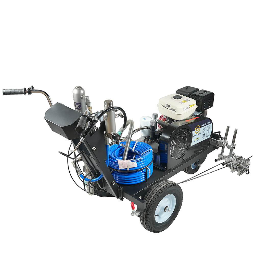 - Универсальность: Подходит для нанесения разметки на парковках, спортивных площадках, аэродромах и других объектах.- Гидравлический насос: Обеспечивает плавное и точное нанесение линий.