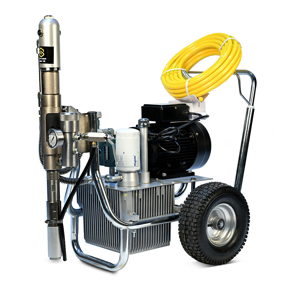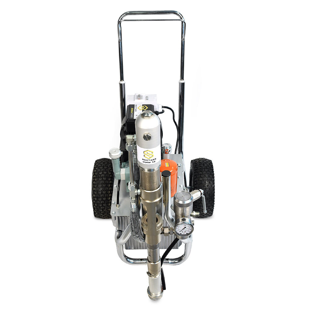 Schtaer Jupiter 12 — поршневой безвоздушный окрасочный аппарат. Он подходит для распыления высоковязких красок, огнезащитных составов, гидроизоляционных материалов, мастик, антикоррозионных красок, цинконаполненных материалов, шпатлевок, грунтов и других материалов, пригодных для нанесения через поршневой безвоздушный окрасочный агрегат. Применяется на строительных площадках при покраске стен, потолков, фасадов, металлических конструкций, крыш, бассейнов, куполов, металлических балок, заборов, мостов, тоннелей, а также для нанесения дорожной разметки при условии использовании дополнительного оборудования.