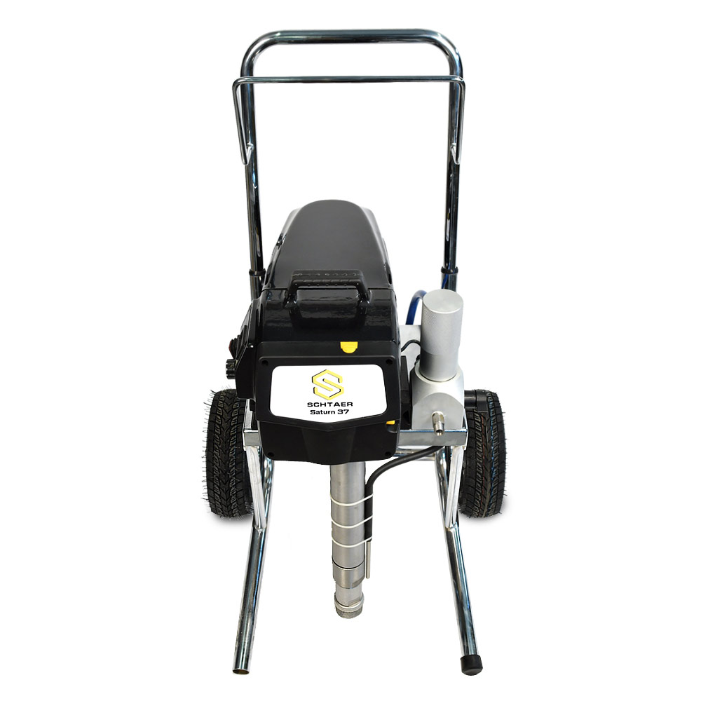 Schtaer Saturn 37 — покрасочный аппарат высокого давления для безвоздушного распыления вязких красок используется для работы на строительной площадке, покраски фасадов, стен и потолков, грунтовки и окраски металлоконструкций, покраски деревянных стен и заборов, нанесения огнезащитных красок на металлоконструкции, распыляемой безвоздушным способом шпатлевки, гидроизоляционных материалов, предназначенных для безвоздушного распыления. Поршневой окрасочный аппарат SATURN 37 забирает краску из ведра через прямой металлический заборник и подает ее по шлангу высокого давления на краскопульт высокого давления.Стандартная комплектация