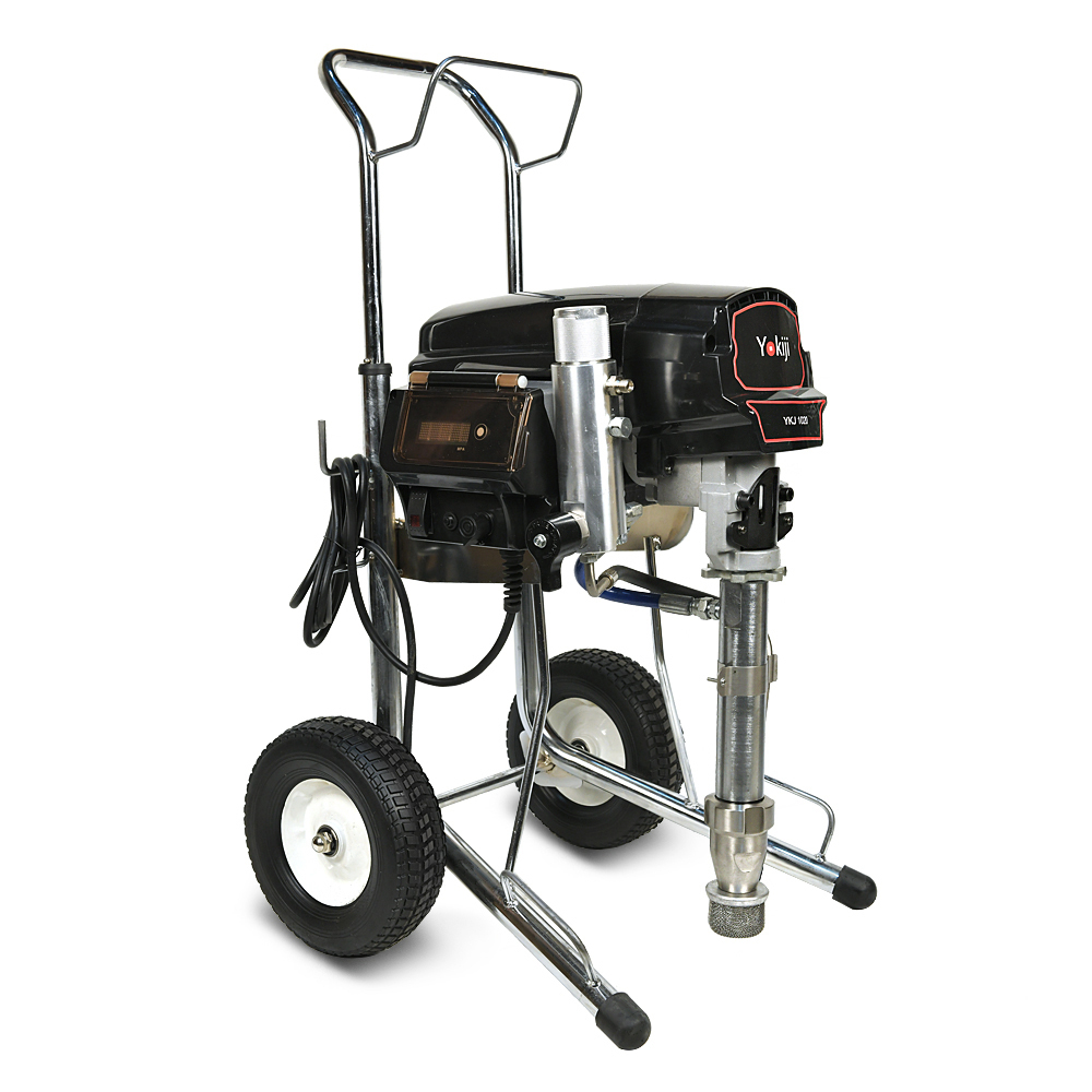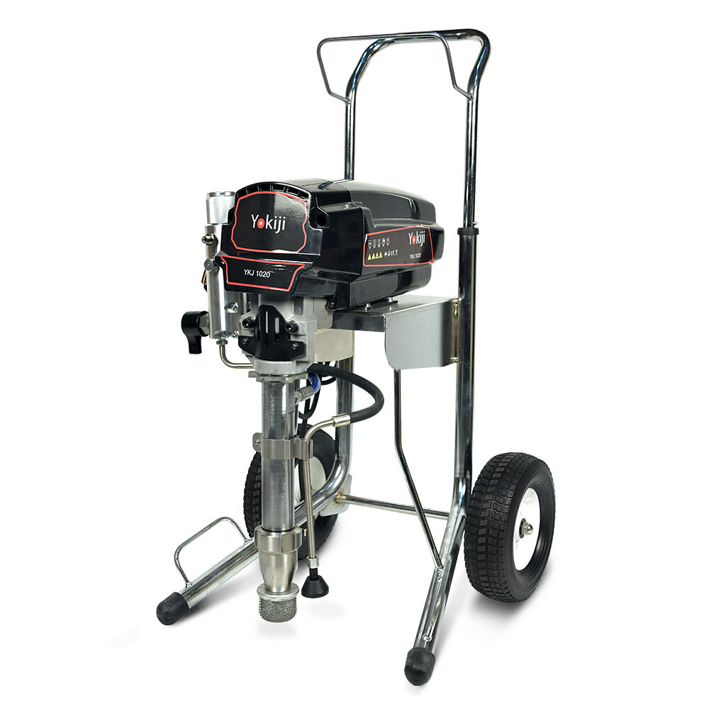 YOKIJI YKJ 1020 – окрасочный аппарат для распыления материалов низкой, средней и высокой вязкости; оснащен выходами на 2 малярных поста. Аппарат имеет высокую скоростью подачи материала - производительность до 6,2 л/мин., при этом более компактный размер и меньший вес по сравнению с аналогичными агрегатами. Подключение шланга возможно до 90 метров при работе материалами низкой и средней вязкости на 1 пост и до 45 метров на 2 поста.