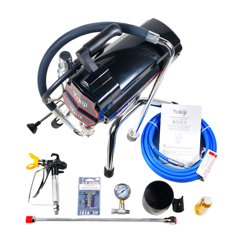 YOKIJI YKJ 115 — профессиональный и компактный окрасочный аппарат, работает по принципу безвоздушного распыления. Широко используется в строительной, промышленной сферах. Надежная конструкция и прочные крепежные механизмы обеспечивают стабильную работу даже в неблагоприятных производственных условиях. Значительно экономит расход малярных материалов и ускоряет процесс выполнения работ.