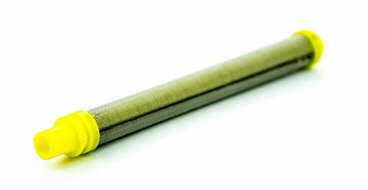 Правильно подобранный фильтр - это залог успеха. Фильтр предназначен для установки в ручку окрасочного пистолета безвоздушного распыления и служит для тонкой фильтрации краски. Краска перед поступлением в фильтр тонкой очистки уже проходит через фильтр грубой очистки (на заборном шланге), фильтр предварительной очистки (в колбе узла заполнения насоса, у поршневых аппаратов). Фильтр состоит из пластмассового цилиндра с круглыми отверстиями на поверхности обтянутого металлической сеткой.