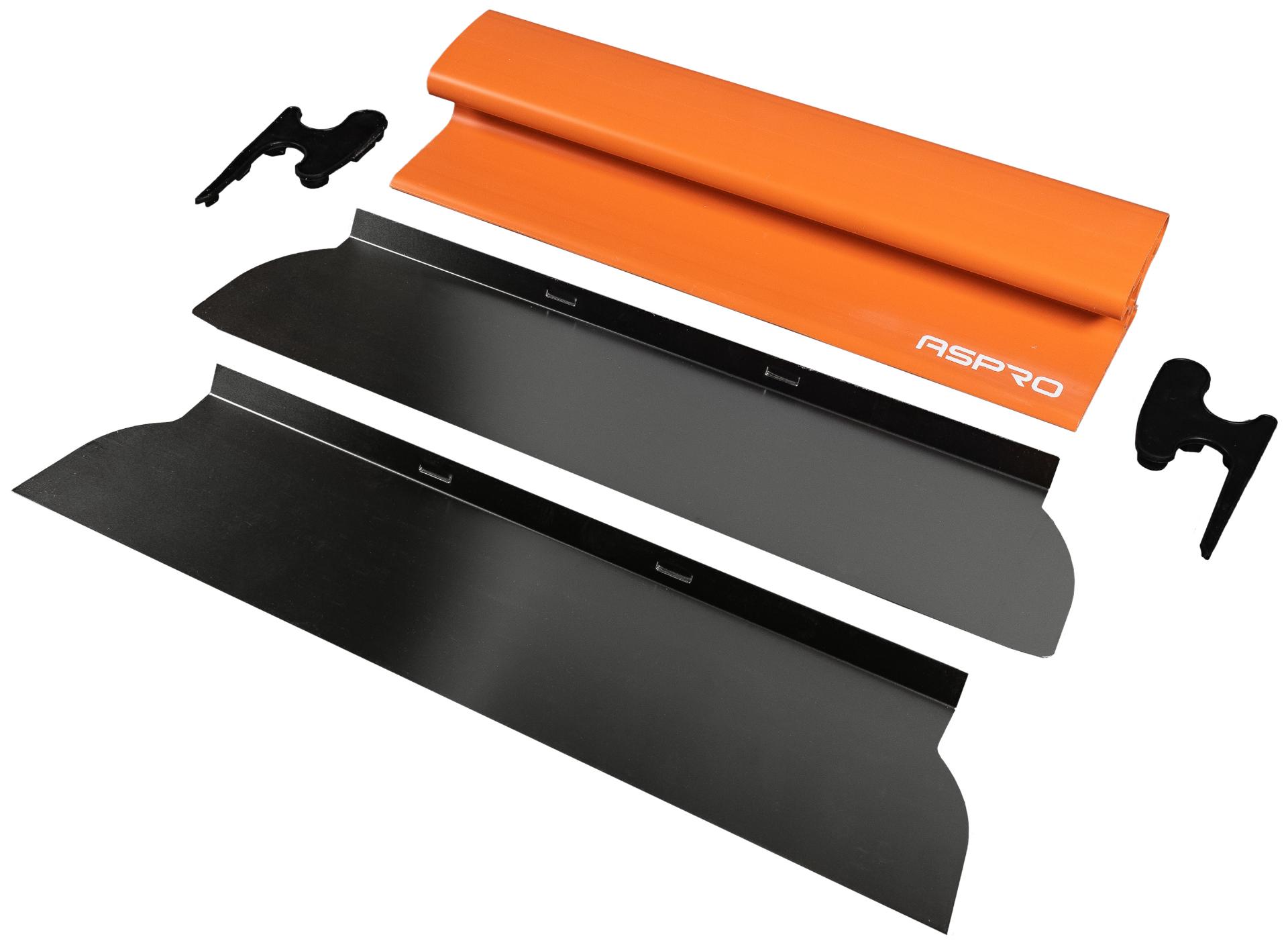 Профессиональный набор шпателей ASPRO включает эргономичные инструменты с возможностью замены лезвий. В наборе 6 малярных шпателей, позволяющих использовать высокоэластичные лезвия толщиной 0,3 мм и более упругие лезвия толщиной 0,5 мм длиной 20, 40, 60, 80 и 100 см. В комплекте адаптер для шпателя и телескопический удлинитель.