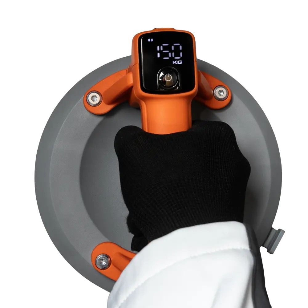 Автоматическая вакуумная присоска для подъема, перемещения и фиксации плитки. Круглое основание с резиновой чашей не оставляет черных следов. Сила вакуума до 150 кг